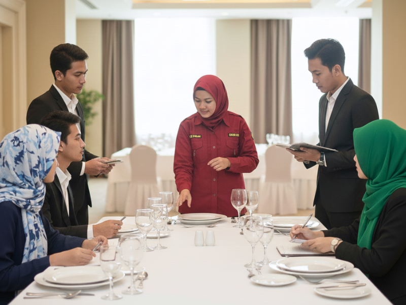 Mendukung persiapan, penataan, dan pelayanan berbagai acara atau jamuan. Membutuhkan kerja tim yang solid dan ketepatan waktu tinggi. Direkomendasikan untuk hotel, convention hall, dan event organizer.